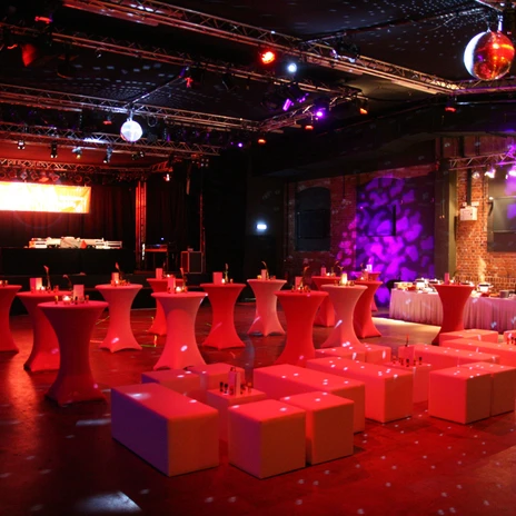 What makes this event venue stand out is its versatility. The centrepiece is Hall A, which covers 900 m² and is bursting with ambience for events. It can easily be adapted to individual concepts, and the Werk 2 team will be happy to assist in working out the room layout and decoration.